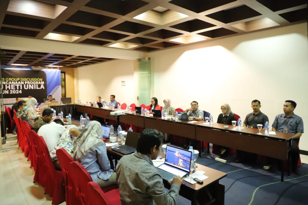 (Unila): Tim Project Implementation Unit (PIU) RSPTN Universitas Lampung (Unila) melaksanakan Focus Group Discussion (FGD) Perencanaan Program HETI Project Tahun Anggaran 2024 secara hybrid. Kegiatan diselenggarakan di Aula Pertemuan Hotel Horison lantai dua, Bandar Lampung, Sabtu, 17 Februari 2024.
